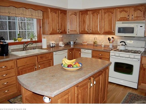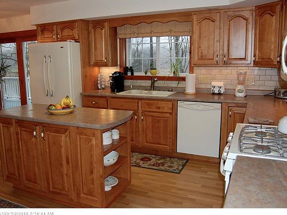 Regal Colonial built w/exceptional craftsmanship. Spacious-4 beds, 4 full baths. Custom kitchen w/gorgeous cabinets, lg L-shaped master bed w/ ensuite & walk-in closet. Gleaming hardwoods throughout. Oversized efficiency windows convey natural light. Fin. basement w/wet bar & full bath, walks-out to paved patio. Delightful Farmer's Porch. Easy access circular drive. Groomed landscaping. Boasts 225' waterfront w/personal dock included. Short boat ride to Cobbossee Lake. Oversized, heated 2 car gar.