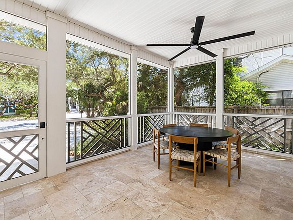 Now let's talk about the back yard! The generously-sized fenced backyard highlights a custom outdoor pavilion with vaulted ceilings and a large dining table, a gas grill, a brick-paved fire pit, and a storage unit for beach equipment and bikes. Additional ample covered storage can be found just inside the screened-in back porch entrance. The property backs up to an alleyway, allowing an alternative ingress/egress to the yard - a rare feature in Grayton Beach. And if a pool is desired, there is plenty of room to build one.