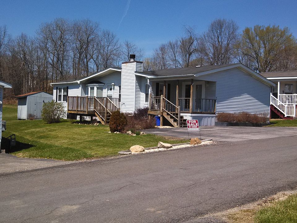 Open floor plan with 3 bedrooms and 2 full baths. Large kitchen with lots of cupboards and center island. Newer appliances and new hot water heater. Large garden tub in master bath. Light paint and newer carpeting throughout. Fireplace in living room. 2 decks, one recently remodeled. Large shed outside for storage. 3 parking spaces. Central air conditioning, gas heat.
