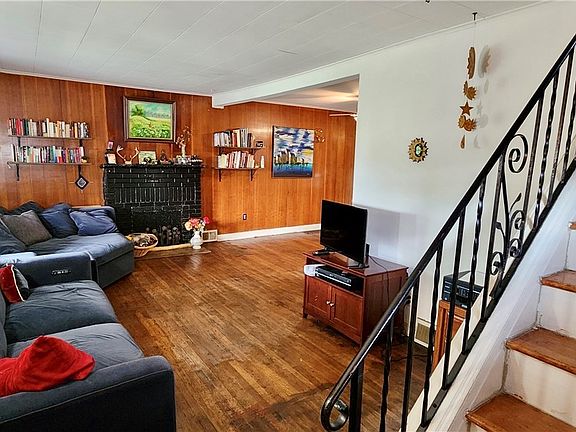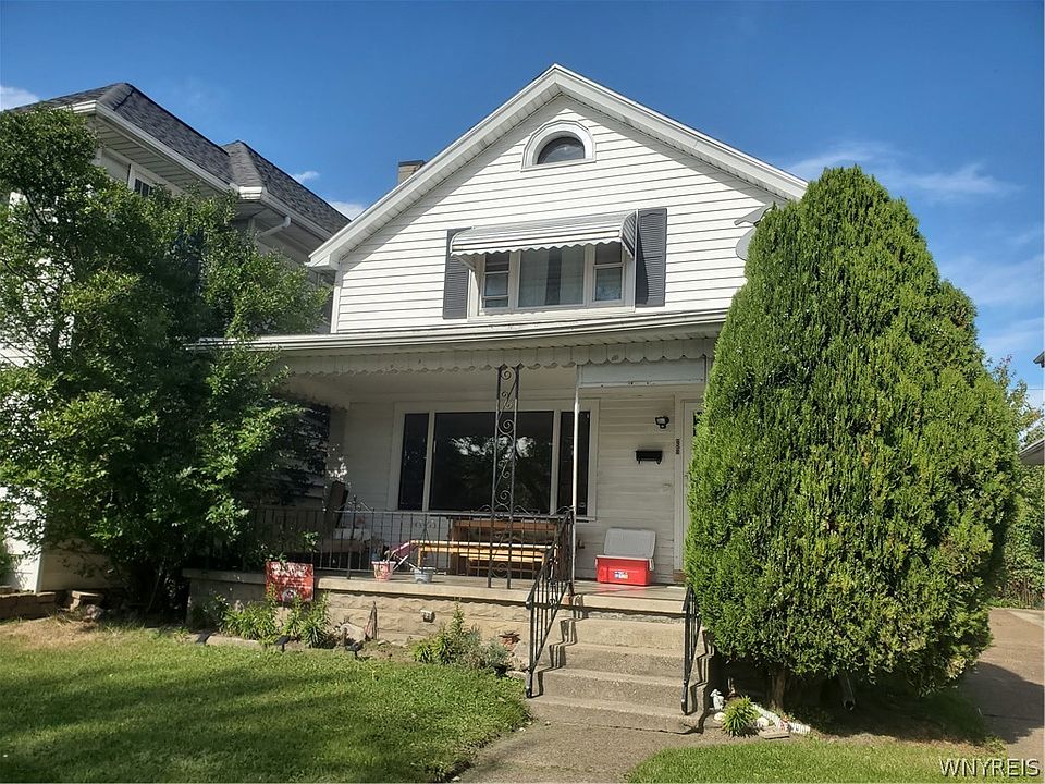 Charming and well maintained colonial, with vinyl exterior and a marvelous open porch. Big yard and shed. Dining/living room combo, refinished hardwood floors. Abundant kitchen cabinet and storage space, three or four bedrooms, modern bathroom. Finished basement with bar.