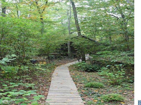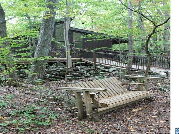 BEAUTIFUL SECLUDED CUSTOM BUILT RANCH-STYLE COMTEMPORARY. Wooded throughout the 8+ acres with sloping hills and creek running through is nature at its best! This home was built with careful consideration of the surroundings and the unique style lets the homeowner feel as close to nature's wonders as possible. The full wall of windows of the open floor plan give views from the living area, dining room area, kitchen and office area into the wooded landscape. This outside feel runs true to the bedrooms, as w ell! The Master Bedroom has a spiral staircase to the loft, 2 large closets with bamboo floors and sliding doors to deck. 2nd bedroom has Brick wall Fireplace with door to deck. Whirlpool bath with water closet and double sink vanity. Walk-in closet centrally located for convenient storage access. Second full bath is next to 3rd large bedroom located off the Screened in Sunroom. (Could be a home office with own private entrance)A brick hearth with fireplace is also in the large open living space. Kitchen has granite counters, stainless steel appliances and glass top range. 6 Skylights and Decks at all sides of the home give more spaces to perch or entertain outside. Well placed lighting on the wooden walkways welcome any visitor. New German High Efficiency Heater installed for low heating costs. Central air new in 7/2013. There are also 2 outbuildings. One workshop/game arena/office building is 32' x 22'with heat and electric. And a utility shed of goodly size complete this wonderful property.