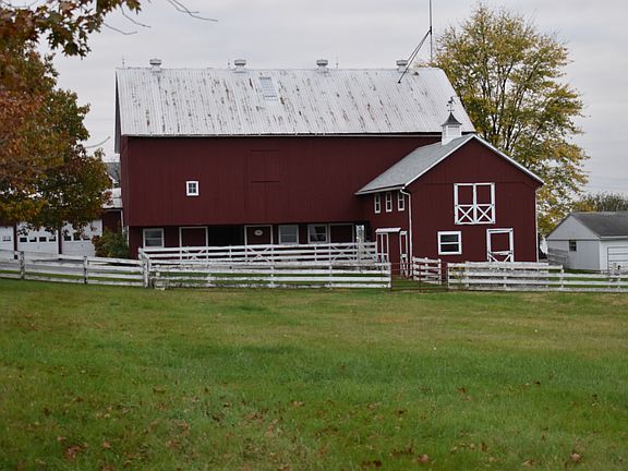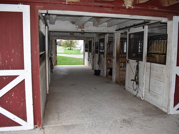 Large Farmhouse with attached 2 bedroom 11/2 bath in-law home. Large Renovated Bank Barn has 10 Horse Stalls, large tack room w/ 2nd floor finished rec room. 11/2 story Carriage House w/ in floor heat, Kitchen, full bath, home office with custom built-in cabinetry, craft room and large entertainment area! Other outbuildings include former woodworking shop, storage building an multiple Run-In Sheds in the meadows! Natural Gas Heat in house an Carriage House. 2500 Watt Solar System