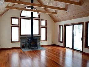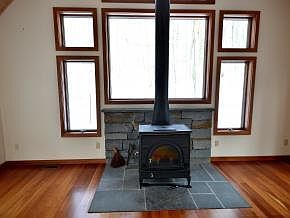 Custom built Contemporary in a New England setting. Enjoy a quiet 2.39 acre wooded setting in a great neighborhood with 111 acres of Finger Lakes Land Trust for hiking & 10 minutes to Cornell. This home is filled with natural light & features an open floor plan & gleaming hardwood floors. The two story great room is accented by a charming woodstove and walls of windows to the woods and patio. Enjoy a main level bedroom and full bath and 2 spacious bedrooms with vaulted ceilings and skylights up. HVAC ground source heat pump provides economical heating & cooling.