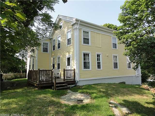 Historic 1890 sq ft Greek Revival with 3 BR's, 2 BA's & views of downtown Mystic. Relax on the two story front porch, each level w/4 Ionic columns & balustrade with turned baulsters. A short walk from town one will enjoy everything Mystic has to offer.