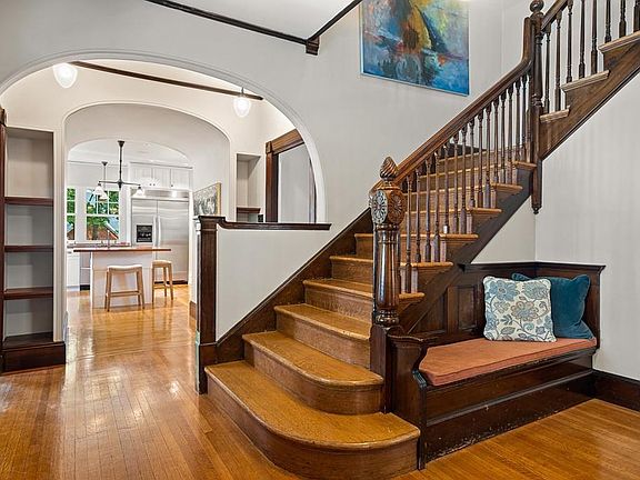 Exquisite detail, a rich Melrose history and superlative location hallmark this beautifully reclaimed 11rm, 5br, 3+bath Queen Anne. Nestled in the lower East Side and offering a backyard oasis, you get the best of all worlds, pairing convenience and privacy with spectacular design and extensive detail. The Charles C Barry home has been renovated with great attention toward period style and fixtures while still embracing today, inside & outside. Expansive eat-in kitchen boasts concrete counters, top flight appliances and cabinetry and oodles of smart space, while the dining room opens to the porch and boasts wood burning fireplace. Parlor with fireplace and sitting room feature lovely details. The master retreat hosts a fireplace, walk-in closet, bath with rain shower and double sinks, built-ins & adjoining study. Four bedrooms and two full baths round out the upper levels. Continue entertaining on the porch and deck overlooking tiered yard. Updated systems. Walk to town, train & more!
