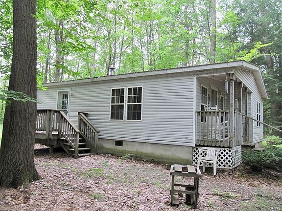 Rare opportunity near Pleasant Lake. Eat in kitchen with open concept floor plan. Large master bedroom and good sized guest bedroom. Side entry doubles as mudroom and laundry. Property has been used only as summer home, but is a year round home. Near snowmobile trail. Covered porch offers glimpse of the lake. Rural wooded setting, but only minutes from Great Northern.