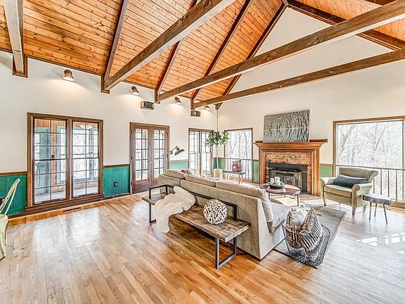 Charming 4 Bedroom, 3 Bath home located minutes from downtown Jasper, yet perfectly situated on a private wooded setting with circular drive & fenced backyard. This great home features a vaulted great room w/ a masonry fireplace complete with a wood burning stove. The kitchen features stained cabinetry w/ quartz countertops and stainless steel appliances. Main level features the master suite with an additional bedroom which is perfect for a guest room or a home office. You're welcomed by the rocking chair front porch and the open great room with plenty of windows. Enjoy your setting with the glassed sunroom overlooking, partial finished basement serves as a craft room, workshop, or great for additional storage, and the upstairs features two spacious bedrooms, full bath, and a loft area. This home has so many great details, from the shingled roof to the beamed ceiling, with an excellent location and great setting, come out and preview right away!
