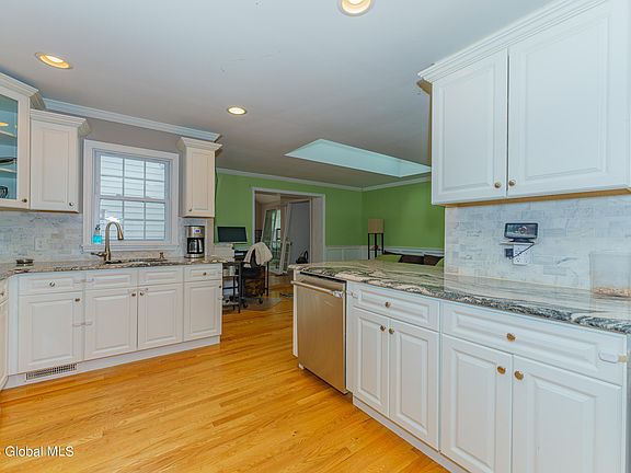 Beautiful Updated Ranch on dead end street in Colonie. Featuring an open floor plan with hardwood floors throughout, updated windows, newer roof, newer siding, updated modern baths, forced air furnace, primary bedroom with walk in closet, brand new additional 400sqft room ready for you to enjoy! Gourmet kitchen with granite counters, stainless steel appliances and marble backsplash. Great house for entertaining. All the amenities you have wanted at an affordable price. Will not last. A Must See!