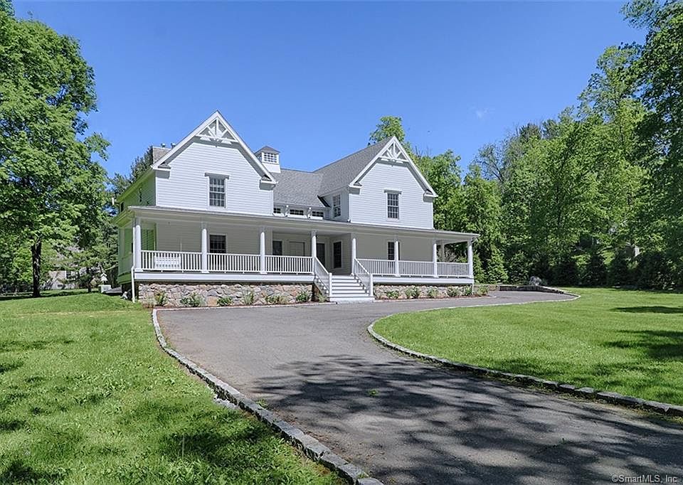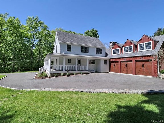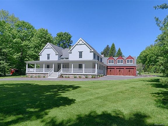 Welcome to this elegant country living home in lower Weston featuring the best wrap around porch in town with excellent curb appeal. This home features 5 bedrooms, 5 full baths, heated and cooled finished lower level, built in audio system, whole house propane generator and an Au pair suite with full bath over the four-car garage. There are three fireplaces, two propane & one wood, hard wood floors throughout, security system and key less entry. The open concept country kitchen has an island with granite counter that seats four and opens to the family room which features a stone floor-to-ceiling fireplace. The main level has a modern layout ideal for entertaining. The master bedroom is stunning; featuring a gas fireplace along with Her & His California closets, balcony and full bath with Carrara marble counter. Exterior features include a screened-in porch, slate patio, built in shed and fenced pet area. The level backyard features a raised cedar vegetable garden, hot tub, swing set and room for a pool. The home is convenient to Aspetuck Valley Country Club and Black Rock Turnpike.