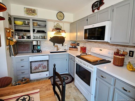 Welcome to this lovely 2-Bedroom,1-Bath 2nd Floor Ranch-style Unit located in prime area at desirable "Sterling Village" Condo Complex, East Meriden. This impressive Ranch Unit has NUMEROUS UPDATES and a tasteful interior neutral color scheme....just move right in and embrace this easy living opportunity ALL NEWER UPDATES INCLUDE: Gray Painted Kitchen Cabinets w/Custom solid wood draws, Corian Counters, Deep Granite Kitchen sink, White Range, Refrigerator, Dishwasher, Convection Microwave Oven, Bathroom has walk-in Shower w/seat, Vanities. Hardwood Oak Floors in Living Room and Hall. Carpet in Bedrooms. Castle easy-clean Thermopane Windows throughout; A/C Wall Units in every room. Hot/Water Heater. Washer/Dryer Hook-ups in Unit. Views from the 7 x 7 Deck of In-Ground Pool,Clubhouse,Tennis & Bocci Courts, Horseshoe Pit,Tot Lot and all in Walking Distance A fenced-in common area for Units in this Building to picnic, grill or pot-plant flowers/vegs. Large storage area in LL. This is the only building w/Ext Stair Hand Rail. One Assigned Parking Space in front on right. Plenty of Guest parking. Pet friendly. Amenities galore offer activities for all ages to enjoy Easy access to Routes I-95,91,15, 84. Town, Shopping, Golf, Hiking, Gyms, Medical, Yale/Quinnipiac Univs.,etc. Approved VA, FHA, CHFA mortgage institutions offer creative financial packages for buyers Rather than rent, why not build equity by owning this convenient one-level Ranch style Condo A pleasure to show