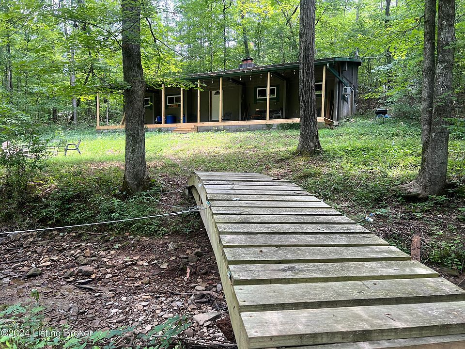 Check out this Nolin Lake Retreat! Located on two interior lots in Ambassador Shores surrounded by shade trees and a gorgeous creek with a bridge! Inside you are greeted by a fireplace and exposed beams in the living room, half bathroom, kitchen, and 2 possbily 3 bedrooms. One room is currently being used as a large dining area. Outside features a 200 sqft covered porch and lots of privacy! This home is located close to Moutardier marina where dock spaces can be rented to store your boat and there are multiple boat launches in the area as well. AirBNB friendly! Call today to schedule a showing!