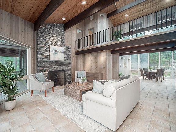 - Liv Dscrp: Fireplace, Main Level, Ceiling - Cathedral, Flooring - Stone/Ceramic Tile, Recessed Lighting, Slider, Balcony / Deck, Ceiling Fan(s), Ceiling - Beamed, Window(s) - Picture, Ceiling - Vaulted