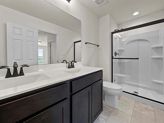 McBride Homes’ Aspen II 3BR, 2BA ranch-style home ready this Winter! A Traditional II style exterior & WALKOUT lot. Enjoy an open floorplan w/vaulted ceilings, 6ft windows, & beautiful wood laminate flooring in main living areas. The kitchen has a large island w/ breakfast bar, level 4 painted white 42” cabinets, quartz countertops, stainless steel GE appliances, & large walkin pantry. The dining area has a sliding glass door that leads to a covered future deck area w/ceiling fan prewire. The master suite has a large window, dual closets, & private master bath w/double sinks & walkin shower. Other extras include main flr laundry, ¾ bath rough in at LL, upgraded lighting & plumbing fixtures, six panel interior doors, plus exterior coachlights. Located off Lamar Parkway and Old Gray Summit Road, The Manors at Brush Creek will have a total of 45 homesites. Enjoy peace of mind with McBride Homes’ 10 year builders warranty and incredible customer service! Similar photos shown.