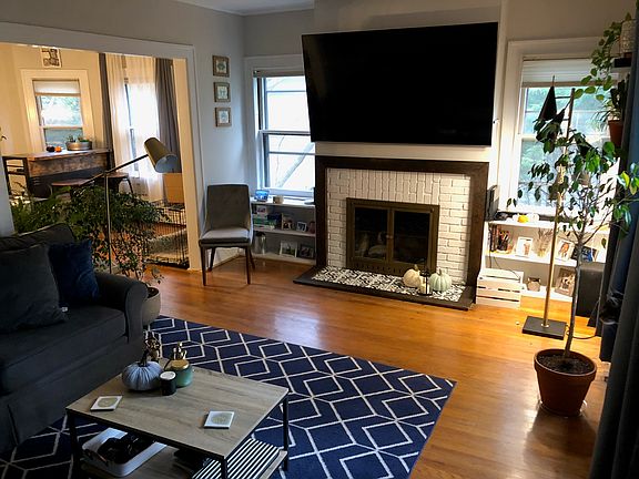 Stylish 2 bedroom, 1 bath apartment on the 2nd level of a multi-family house. Terrific West Hartford location - walking distance to the Blue Back Square/Center yet on a quiet street. This is a rare find to live in style and enjoy prime location! The apartment features: - grand living room with a decorative fireplace, - large formal dining room, - updated kitchen; - designer's bath; - sunny front porch; - washer and dryer; - garage parking for one car. Additional off-street parking is available. Fenced back yard. Cats are allowed. Small dogs are considered for an additional fee. Re-furnished hardwood floors throughout, freshly painted walls. One year lease minimum