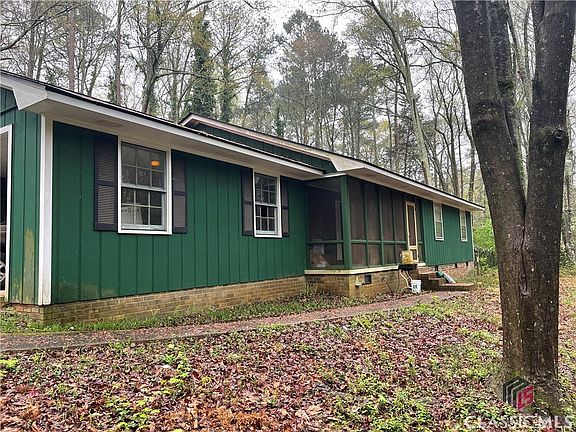 Downtown Watkinsville for under 300k! Walk to restaurants, shops, Watkinsville Woods trail system, Harris Shoals Park, and the impressive new public playground! Large lot nestled in a natural setting with over 100’ of creek frontage, this home really checks a ton of boxes. This one level, three bedroom, two bathroom ranch features a ton of recent upgrades to save the buyer serious money. New roof (2020), New gutters and downspouts (2022), New HVAC total house system with gas furnace, pump, flue, ductwork, air sealed floor, vapor barrier, additional insulation, large-screen thermostat (2015), new electrical panel and code-related upgrades (2009), UV air purifier (2018), and many more! Grab a rocking chair for the screen porch and watch the birds, deer and other wildlife stroll next to the creek with minimal traffic noise on the short cul-de-sac street. Multi-level playhouse/storage is ready for kids to explore! More pictures to come.