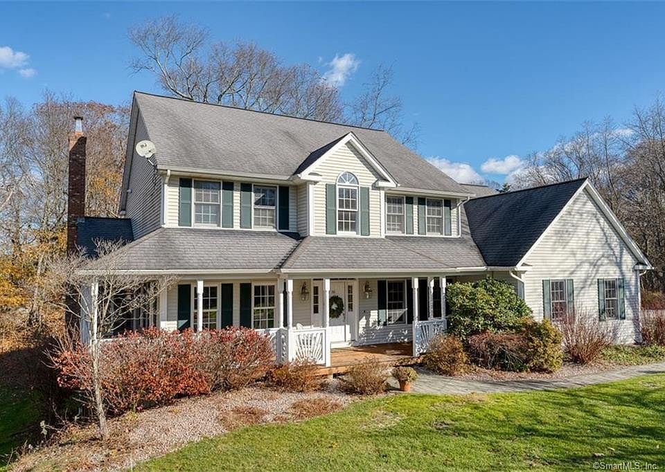 Located just a short 1.5-mile drive or bicycle ride from Guilford’s historic Village Green, this gracious Colonial home feels a world away, virtually unseen from the street in a quiet enclave of three quality homes. Built in 2001 and lovingly and meticulously maintained and updated, a welcoming wraparound front porch greets visitors before they enter the spacious foyer with formal living room to the left, currently a music room, and dining room to the right. The flow of the home is ideal for entertaining, gatherings on a large or small scale, with French doors leading from the living room to an open floor plan kitchen, updated with stainless steel appliances, and family room with fireplace, the heart of the home, with French doors leading to a length-of-the-home back deck. The upper-level features four good-sized bedrooms, including the primary bedroom suite with vaulted ceiling, two walk-in closets, and expansive spa bathroom. Not to be overlooked: a main level study as well as more than 500 sq ft of finished lower-level space with walk-out, currently used as home office and exercise room, plus additional ready-to-be-finished areas. This special home in move-in condition is only minutes from shopping, restaurants, highways, town beach and train station.