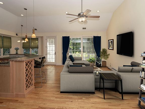 Custom built home priced under 500k! Where to start...large paver driveway leads to a 2 car garage and rocking chair front porch. 3 bedrooms, 2.5 baths, Eat-In Kitchen features a wrap around breakfast bar with a build in wine rack and 2nd mini fridge. 2 additional rooms for possible 4th bedroom, office, den and/or dining room. Open floor concept living room with cathedral ceilings and recessed lighting. LR leads to a large full length back deck featuring a motorized awning and built in HOT TUB! The home comes with solar energy reducing your electric bills substantially. In addition, it includes a 17kW Generator. Sunshine wraps around the home with plenty of large windows. Cant forget the huge basement with half bath. Come see this home located walking distance to downtown and the train.
