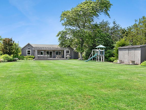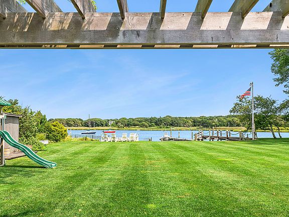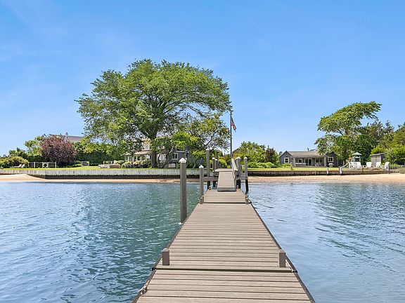 Experience the epitome of coastal living with this exquisite beach house perfectly situated on the water's edge on 114 +/- ft of waterfrontage. Anchored by a 100-foot dock that beckons boating enthusiasts, this haven of tranquility offers an expansive retreat primed for expansion. Currently featuring 4 bedrooms, an office/gym, and a newly renovated bathroom, the possibilities are boundless. Step inside to discover an open living room seamlessly flowing into a charming country kitchen. Adjacent is a covered sunroom, an ideal spot for taking in breathtaking waterfront vistas. Entertain with ease on the generous deck, perfect for gatherings under the sun and stars. As you approach via the long country driveway, ample parking invites guests to share in the coastal splendor. With quick boating access to the ocean and beyond, maritime adventures await just beyond your doorstep. Nestled in a coveted South of the Highway Southampton location, this beach house is a mere stone's throw away from Southampton's prestigious golf courses. Embrace the freedom to keep the current design or unleash your imagination to create an enchanting coastal haven that encapsulates both boating and lifestyle aspirations. Your dreams can come true!