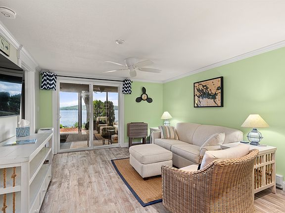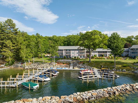 Million-dollar views looking toward Meredith Bay and the mountain range, with your very own deeded 24-foot boat dock! It doesn't get better than this. Rocky Ledge Shores properties don't come on the market often! Come view this year-round waterfront 2 bedroom, 1 bath condo. Totally remodeled. New waterproof vinyl flooring throughout, paint, granite countertops, vanity, appliances, fixtures, interior doors, exterior thermo-pane windows and sliding glass door, etc. This unit is beautifully done and has been meticulously cared for. Enjoy expansive lake views from your living room, primary bedroom, three-season porch, and the outdoor patio. During the evenings, you can relax on your patio and watch the beautiful sunsets while the Mount Washington sails by. Watching fireworks from the patio is also a treat during the summer. Rocky Ledge amenities include tennis, trash pickup, snow plowing, beautifully manicured lawns & gardens, a beautiful sandy beach, and a water trampoline for the kiddos. Your family will feel like you're at a 5-star resort! This is your chance to be on the Big Lake without breaking the budget. This unit comes mostly furnished. Please see the list of furniture attached. This unit must be seen to be appreciated. Within 15 minutes of I93, Gunstock Ski Resort, Bank of New Hampshire Pavilion, just minutes to Weirs Beach attractions, many marinas, restaurants, and so much more!! Come enjoy everything the Lakes Region lifestyle has to offer for only $649,900.