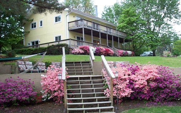 Lakeside living at its best with this two level home located on the southeast quad of Lake Gaston. Azaleas and shade trees abound on this property but with an open view to the lake. Easy access to the boathouse that has an area for dining and another area for entertaining by the water. Located in the upscale subdivision of Fox Hollow which is only 3 miles from the golf course that is located in Myrick Estates. Approach to the property has a circular flat driveway with many types of trees and a partially fenced yard for children or pets. Access the home from the porch or the upper deck. Be amazed at how open the floor plan is with the great room, kitchen, dining and bar area.