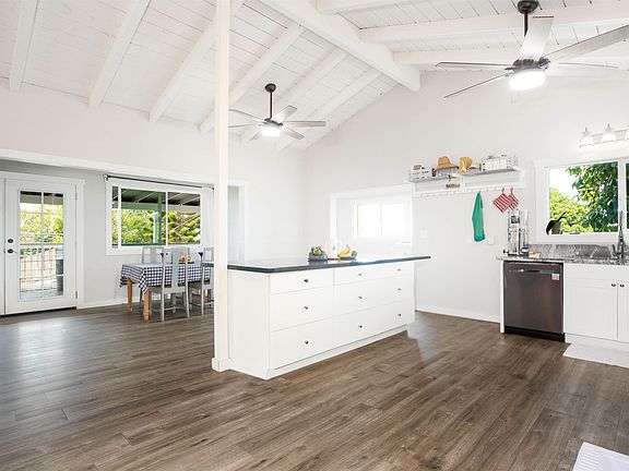 Charming Remodeled Makawao Ranch Acres Home Breezes flow through this spacious, home. New Roofing tops both the main house and cottage.The open kitchen boasts updated countertops and Frigidaire appliances, complemented by a Whirlpool washer/dryer set. The home also features recently installed toilets, sinks, light fixtures, ceiling fans, and luxury vinyl plank (LVP) flooring throughout. Interior was freshly painted with high open beam ceilings and a refreshed fireplace, the expansive living room opens to generous covered lanais (decks). The detached, freshly painted 2-bedroom, 1-bath cottage creates a cozy comfort living space, and includes new flooring and appliances (own washer/dryer below). Plus room below provides a creative multiple living opportunity. The landscape is nourished with Mountain Apple, Avocado, Kalo, Lemon, Loquat, Raspberries. This is a must-see property with over $200K in past renovations and numerous improvements. Schedule a showing today to fully appreciate the beauty and potential of this unique property!