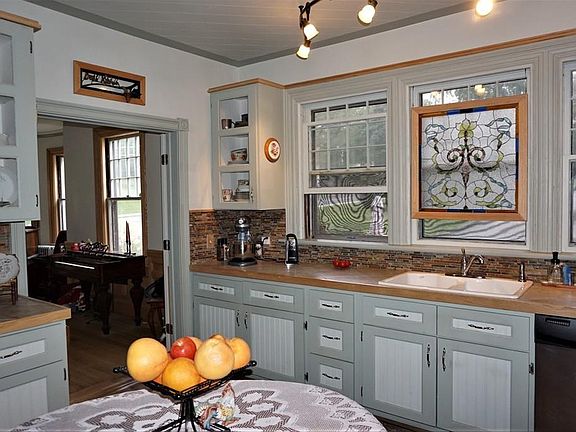 MAGNIFICENT UPGRADED ANTIQUE COLONIAL featuring original exquisite details! You'll be charmed by the large rooms, decorative fireplaces, stained glass windows, refinished wood floors (some new hickory), quartered oak raised panel wainscoting, wide woodwork and crown moldings, circular floor plan with variable living options, decorative chandeliers, curved corner windows, elegant detailed stairways (a back staircase from the kitchen too) and much more! The remodelled kitchen is fully applianced with an antique Hoosier cabinet, plentiful storage and Butler's pantry. Each room reveals unique features! Fabulous enclosed front porch and entry vestibule with leaded glass! Many of this home's antique treasures will be offered to the new owners. Recent architectural shingled roof, painted exterior, natural gas boiler and HW heater. The full walkout basement has ample workshop space and you'll enjoy the attractive yard with a spacious patio and lovely perennial gardens.