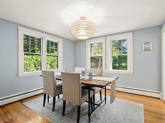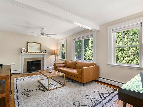 A special Sudbury offering in time for summer; welcome home! This expanded cape has been thoughtfully updated over the years to incorporate New England charm with modern amenities. The classic center entrance with original glass leads to stone-tiled entry & cozy living room with fireplace, built-ins & formal dining room on either side. The cheery eat-in kitchen with beautiful Hale Navy maple cabinets and open shelving provides style and functionality, SS appliances and lots of natural light. A fabulous flex space, currently used as a walk-in pantry provides so many options – see paperclip. Turning the corner are two bedrooms and full bath. Second floor has a stunning primary suite with beamed, cathedral ceiling, en-suite bath with radiant heat flooring, soaking tub, oversized shower & double vanity – lovely rustic details & adjacent area serving as an office – perfect for a nursery, dressing room, etc. 2 car detached garage & nestled on a private wooded lot across from conservation