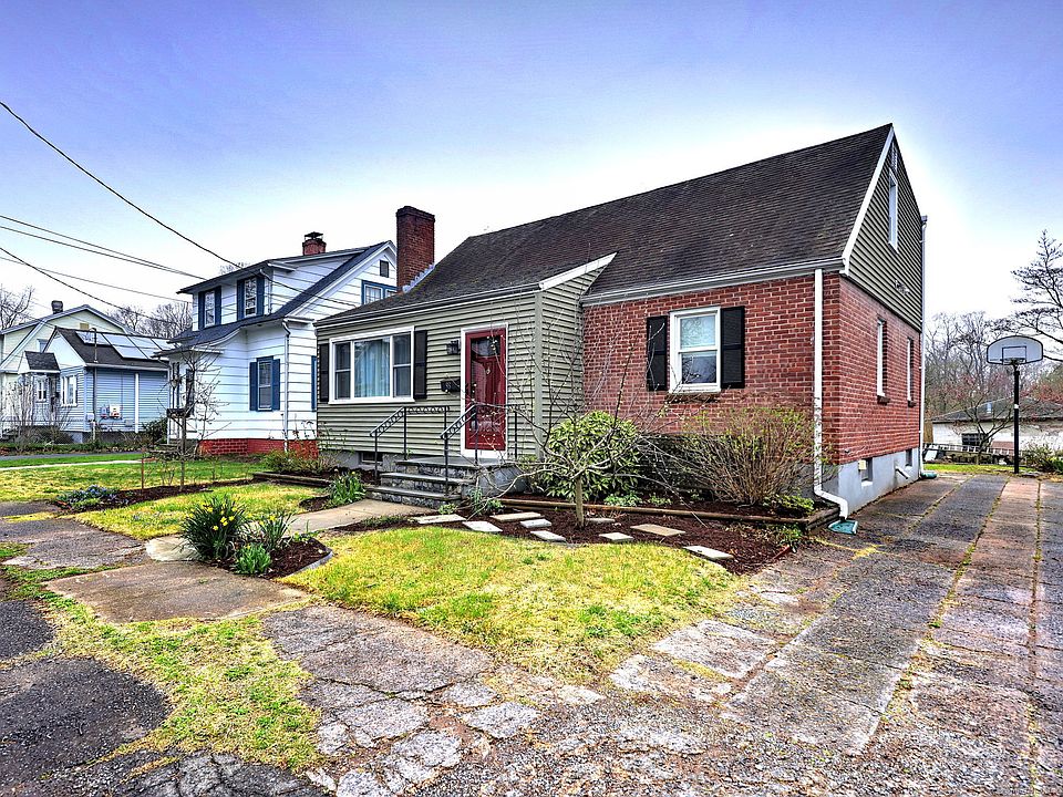 Don't pass by this 1500+sf Cape located in the 'soon to be' newly constructed Washington Elementary School area. This extremely well maintained home offers 4 bedrooms, 2 full baths, all hardwood flooring & an inviting 3-season porch (which adds another 144sf). The moment you step through the front door & walk into the enclosed entryway you will fall in love with the charm that is offered. From the spacious living room w/wood burning fireplace to the dining room & updated kitchen, you will be amazed at the entertaining space that is provided in this home. The kitchen, opened to the dining room, was remodeled in 2010 & boasts St. Charles mid-century modern metal cabinets, granite counters & a center island that includes the dishwasher; a few steps down from the kitchen is the 3-season porch or a few steps to the right brings you to the side deck which is perfect for grilling. Two bedrooms, w/hardwood flooring, & a full bath finishes off the main level. Upstairs offers 2 addtl oversized bedrooms w/hardwood flooring & built-in wardrobes, & a 2nd full bath. Enjoy summer nights on your patio serving peaches, grapes & blackberries from the existing crops! The front yard offers apple trees & blueberry bushes. The rear yard also offers a greenhouse or treehouse, you decide the use! Gas heat w/2 zones (approx 12-15 yrs); the front roof is approx 20 yrs & the rest of the roof is 8-10 yrs. HIGHEST & BEST DUE BY MONDAY, 4/22/24, 10AM.