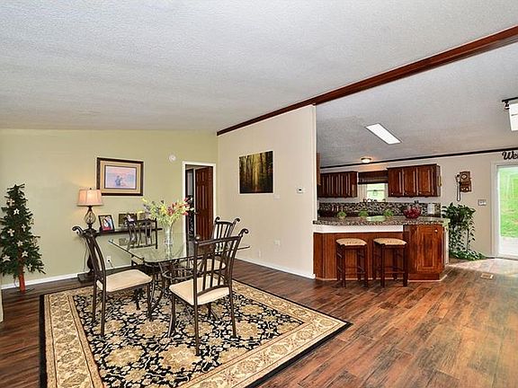 -This roomy, double-wide manufactured home on almost one acre has nearly 1700 sq. ft. of living space-BONUS, a two car garage w/high ceilings & electric in need of some TLC-Nice, open floorplan w/big rooms, vaulted ceiling, skylights & first floor laundry-One level living w/3BRs include a segregated master w/full bath & deep soak tub-Covered front porch w/overlooking views of hillsides & valleys-Expansive, rear house deck accessed from the sliding patio door-Rural location, yet oh-so nearby to community playgrounds, pavilions, baseball field, basketball & tennis courts!-