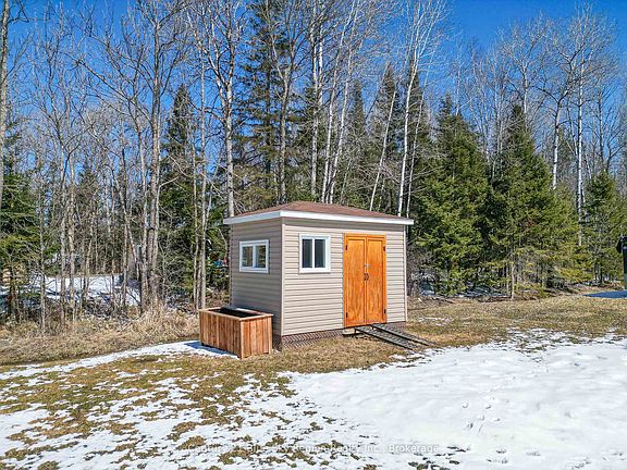 Tucked into the trees on a beautifully landscaped 2.7-acre lot, this charming home offers the perfect balance of privacy and community. Located in a sought-after neighbourhood just 15 minutes from North Bay, you'll love the peaceful surroundings without feeling too remote. From the moment you pull up, the curb appeal is undeniable. A winding driveway leads to an attached 1.5 car garage with convenient inside entry. Step inside and you're welcomed by warmth, character, and a layout that just feels like home. The main level features three spacious bedrooms, including a primary with ensuite, and a bright, airy living room that's full of natural light. The wood cabinets in the kitchen and custom trim details throughout reflect the care and craftsmanship that has gone into this home, especially from the long-time owners who've lovingly maintained it for over 30 years. There's even a dedicated workshop area inside for anyone who enjoys woodworking or DIY projects! One of the standout features is the grand sunroom with cathedral ceilings, an ideal spot to enjoy quiet evenings while overlooking the forested backyard. There's also an above-ground pool to enjoy during those warm summer days. Downstairs, the lower level includes a fourth bedroom, a large rec room, and loads of storage. Located in the heart of East Ferris, you're just minutes from local hiking trails, tennis and pickleball courts, and all the amenities the community has to offer. This is a wonderful place to put down roots and call home. Here's the bonus: the owners have resided and re-insulated the entire home, which means the utility bills are incredibly low averaging just $300/month for both heat and hydro. Plus, living in East Ferris means some of the lowest property taxes in the area.