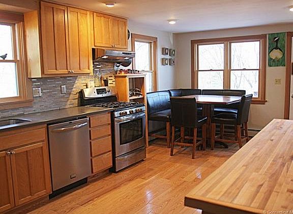 WATERVIEWS! Reverse Salt Box Colonial with seasonal waterviews of the Thames River and lots of new updates! Updated kitchen with Corian Countertops, SS Appliances, gas stove, hardwood floors and butcher block counter, new Windows, new five-zone gas efficiency heating system with new propane tank, some updates to baths with vintage tile, Gorgeous wood burning fireplace AND a pellet stove, Screened-in Porch for summer months and Sunroom for winter months to enjoy the views! There are essentially TWO Master Bedrooms, 1 with Master Bath and 2 closets, the other with a walk-in closet, both HUGE ROOMS! 4 bedrooms in all with 2 full baths, 1 half bath and a 2 car detached garage also with a new roof, garage door opener and workshop. The grounds feature lots of rock gardens and repaved circular driveway, beautiful professionally built stone wall overlooking the water. The land is not too large to take care of yet offers just enough to play with. Upgraded 200 amp service, re-insulated attic, and public water round out the improvements. Move-In Ready! Walk to Erickson Park, Harvard Boathouse, and the River!