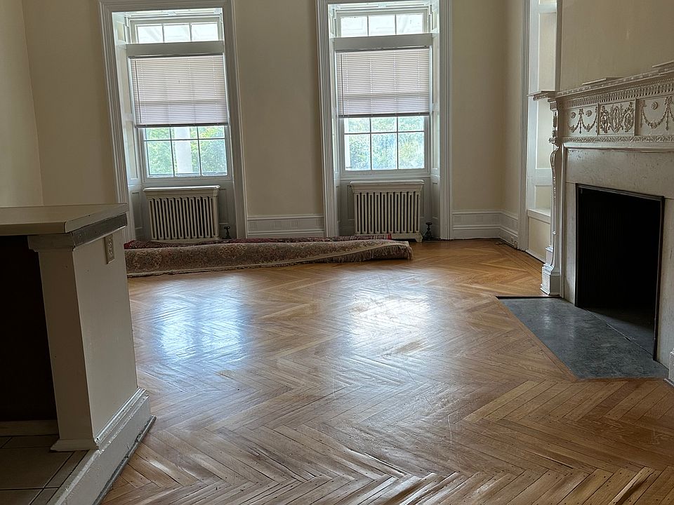Gorgeous, huge one bedroom apartment in historic 1700s mansion a few minutes from Rhinebeck village. Large living room with 15 foot ceilings, parquet wood floors and beautiful mantle and fireplace detail. Large windows provide amazing light. Living room open to efficient kitchen. Enormous bedroom with huge walk-in closet. Modern tiled bath with tub. Heat include. Washer and dryer on premises. Gorgeous veranda, overlooks acres of manicured, estate property with waterfall. Owner, mows, plows and provides garbage. Half month real estate fee. Mainly rentals real estate. Licensed real estate broker.