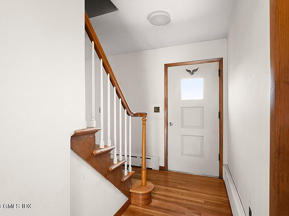 Located on a quiet cul-de-sac on a flat oversized lot, this 4-5 bedroom classic home with a natural flow is ready to receive your vision and imprint. Close to the playground & ballfields at Pemberwick Park, with easy access to transportation, schools & amenities. 1st floor has eat-in kitchen, dining rm., bright living rm. and 2 bedrooms. Another room can be a first floor en-suite primary, or family rm., or office or whatever is needed. Upstairs are 2 more spacious bedrooms and a full bath. The deck offers space for grilling & enjoying peaceful water views. Newly finished hardwood floors throughout. New boiler, hot water heater, washer & dryer. Garage has ramp for easy unloading and accessibility. Terrific opportunity to get started in Greenwich with plenty of room for expansion.