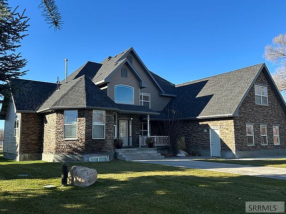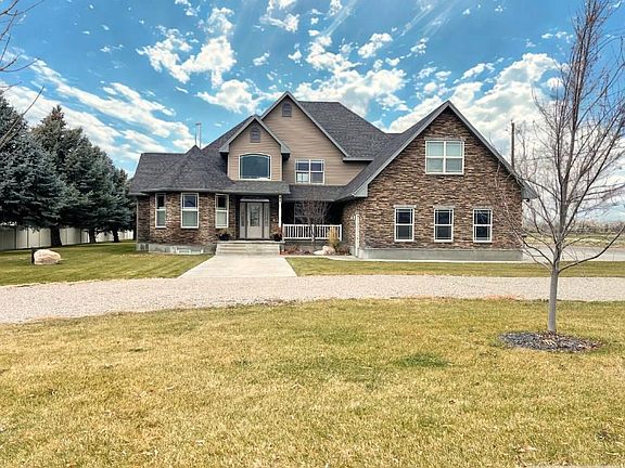 Stunning custom-designed home loaded with upgrades and thoughtful details throughout! The main level features lyptus wood flooring, a versatile living room/office, and a spacious family room with 17-ft ceilings, custom built-ins, gas fireplace, and open catwalk. A half bath leads to the beautiful primary suite with coved tray ceiling, new bath with double sinks, granite counters, soaker tub, walk-in shower, and two walk-in closets with custom shelving. The kitchen includes custom cabinets, stainless appliances, new built-in range, wall oven, microwave, and built-in china hutch. Access the new Trex deck from the kitchen or primary suite and enjoy the huge backyard with a cemented basketball court and space for a future shop. Main-level laundry offers a folding counter, sink, cabinetry, ironing board, and laundry chute. Upstairs features 4 bedrooms, 2 baths, and a bonus room over the 3-car garage. The fully finished basement includes 2 bedrooms, a bath, 3 storage rooms, large great room with pool table, kitchenette/bar, built-in desk, exercise room. Major mechanicals: 2 furnaces, 2 gas water heaters, AC, and whole-house intercom. The insulated, sheet-rocked garage has newer doors. Truly a must-see! Buyer to verify sq ft.
