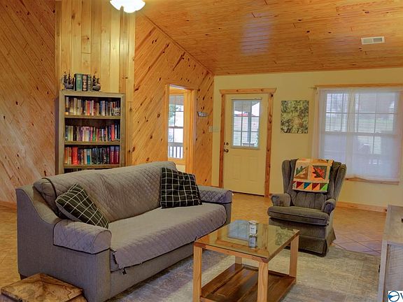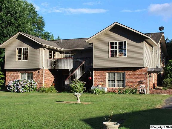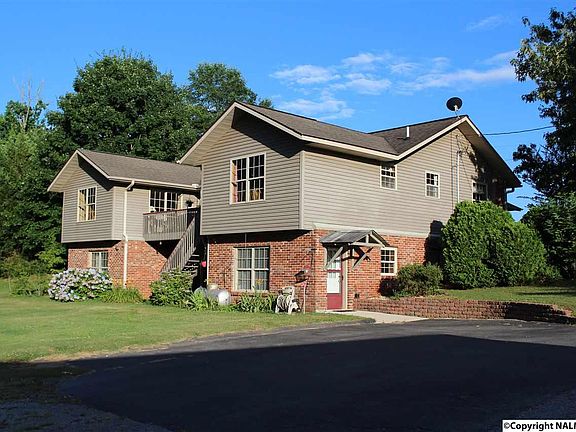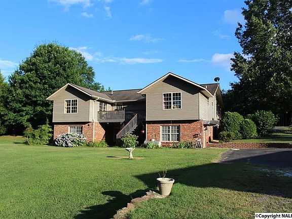Priceville school district. Secluded 2 Acres with beautiful view, this property has 3800 Sqft home including walkout basement. Vaulted tongue and grove pine and ceiling in living room. Home has finished basement with living room, kitchen and two bedrooms and two bathrooms, top floor has three bedrooms, two bathrooms kitchen, living room and laundry. Then comes the fantastic surprise an 1886 hand hewn log cabin. Complete with bathroom and kitchenette, perfect for a man cave or craft area. Two decks on the back of the home.