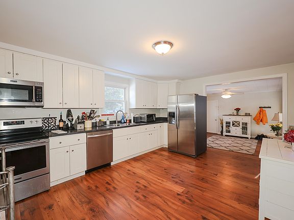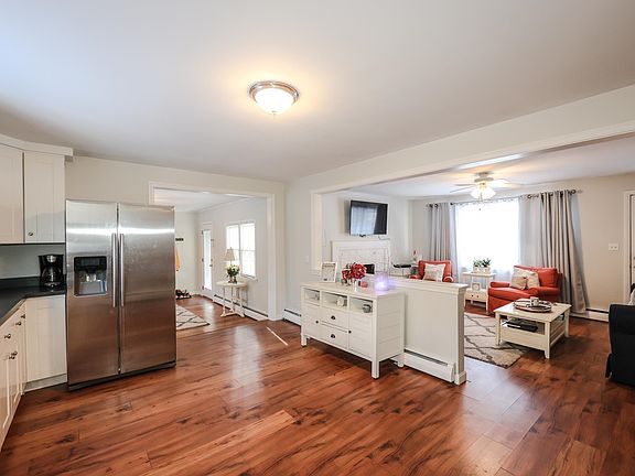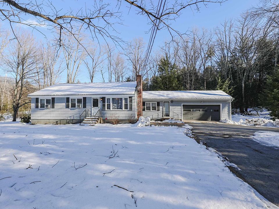Move in ready Ranch with a classic style and the comforts of one level living. Situated on 1.9 acres and located .5 miles from the high school with easy access to highways. Open concept living/kitchen and dining with Stainless steel appliances, stylish white cabinetry, wood burning fireplace, and plenty of space for a kitchen island. Hard floor surface throughout with a direct entry from the attached 2 car garage. Surrounded by a wooded lot. This home has many options for expansion possibilities. This location cannot be beat!