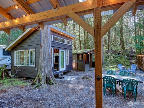 Welcome to your peaceful retreat in The Glen at Maple Falls, Division 1, Lot 98! This nearly 4,000 sq ft lot is both welcoming and private, tucked among the trees with space for picnics, relaxation, and recreation. The well-kept 2019 trailer features a kitchen with all the essentials and opens to a large, covered porch perfect for outdoor living. Multiple outbuildings offer flexible space to meet your storage or hobby needs. As part of The Glen’s gated community, you’ll enjoy pools, hot tub, clubhouses, sports courts, trails, 24/7 security, and more. Zoned recreational for 120 days of use per year, this gem is ready for your seasonal escape or weekend getaway.