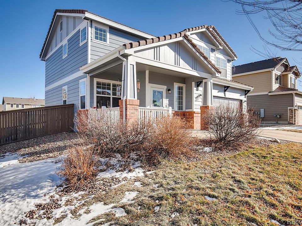 Beautifully updated 4 bedroom, 3 bathroom house in Castlewood Ranch! Brand new carpet, exterior paint & light fixtures with upgraded flooring throughout! Large fenced yard with patio out back and a covered front porch. Kitchen has new tile floors, kitchen island, stainless appliances including refrigerator, eat in area and pantry. Opens into family room featuring built in's and a doublesided fireplace, which flows into spacious living room with vaulted ceiling. Main floor also has updated powder room and laundry room with cabinets. Large Master Suite has attached bathroom with His and Her sinks, new tile floor and walk in closet. 3 more bedrooms upstairs as well as a full bathroom. Oversized 2 car garage with shelving. In nationally recognized Douglas County School District. Walk to parks, trails and schools!