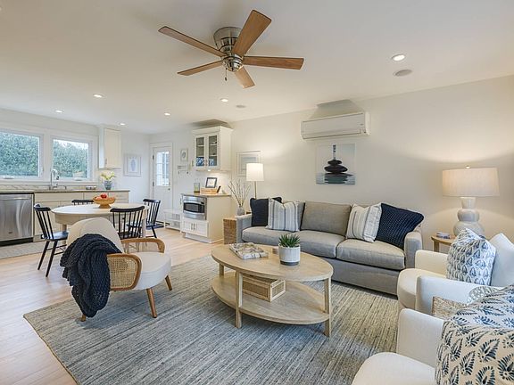 Professionally decorated with new coastal decor from top to bottom and stocked with new household items makes this charming Cape located in Southampton Village one of the best finds for the summer of 2024. Upon entry you are greeted by an open living/dining room and kitchen which is newly remodeled offering stainless steel appliances, granite counter tops and a door out to the very large private back yard. 2 guest bedrooms (one has a queen bed and the other a full) and a full bath with a walk-in shower complete this floor. The primary bedroom with a king bed is located on the second floor. There is a full bath with a tub as well as the 3rd guest bedroom offering a full bed. The finished lower level has an office with a desk & couch and a media room with a large TV, couch, chairs and bar. There is also laundry with new California closet space. The property is surrounded by substantial professional landscaping with many flowering shrubs and large trees. Contributing to the outside beauty is: a fenced in heated L-shaped pool, new 42" built-in BBQ, new lounge set and bluestone patio. 2 Bikes. Conveniently located to village shops, restaurants and ocean beaches.