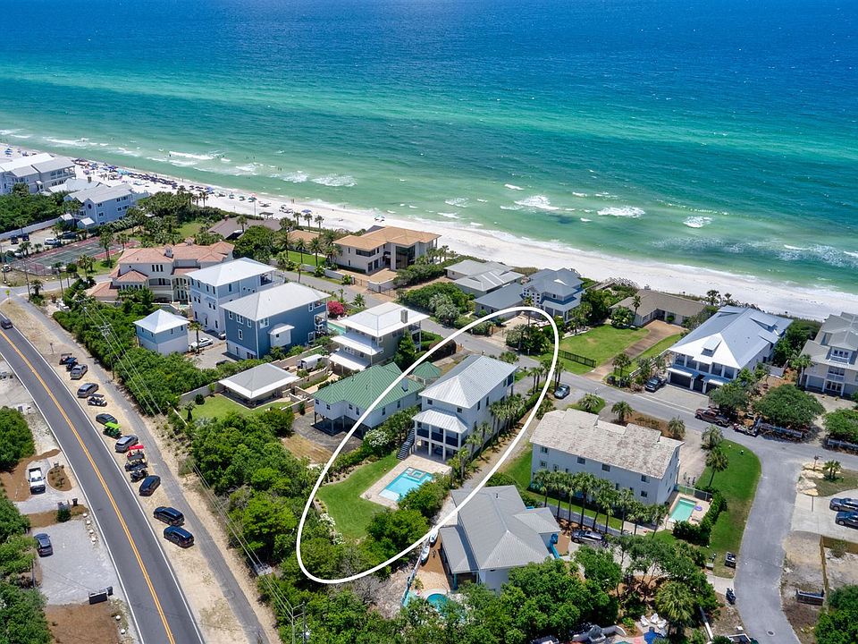 Amazing Second Row Gulf home in gated Pelican Circle, south of 30A. Fully decorated and fully furnished. Forever panoramic Gulf Views, large enclosed yard with a big pool, block construction with full impact glass. Venitian plaster fireplace.Plenty of room in this backyard oasis. 2 garages with room for a golf cart. No HOA. Direct Access to the 30A Bike Path from the back yard. Gourmet kitchen with Thermordor Appliance package, 6 burner gas range with pot filler, pantry stunning quartz finishes, Large Great Room, for entertaining with forever Gulf views. Hardwood floors throughout. Sold fully furnished and move in ready. Main level features two bedrooms and full bath, with one bedroom allowing a separate area for the kids.