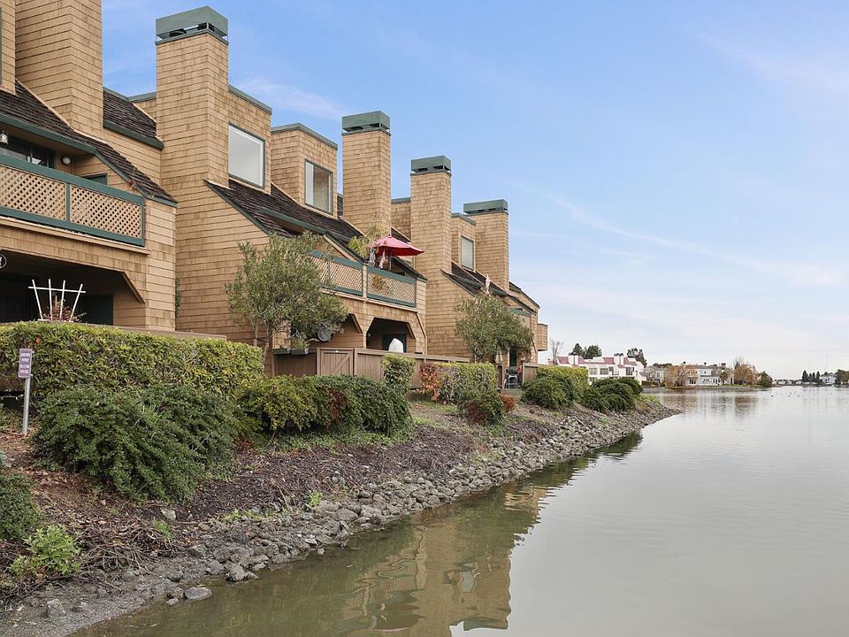You must see this Updated, waterfront, 2 bed/1 bath, 2 story condo overlooking the wide water in Redwood Shores. This spacious and open concept unit has more than ample natural lighting, high cathedral ceilings that emits a feeling that you are in a luxury vacation home. The kitchen was just updated with new cabinets, quartz countertops, new sink and newer, stainless steel appliances. The bathroom has a brand new vanity and granite countertop as well. There is a high quality hardwood like laminate flooring in the kitchen, living, dining & hallways. The master bedroom is spacious with high ceilings and a private patio. Upstairs, there is an extended loft with an office with staged bedroom. The main deck/patio is outside the living room and offers views of the water.. There is a sizable storage closet on the deck as well. As an extra bonus, the condo comes with a kayak and a secure kayak storage space. The Pelican Cove community has two pools, docks, open space and a beautiful clubhouse.