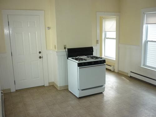 This large 3 bedroom 1 bath apt is ready for rent now, wall to wall carpet in bedrooms and living room. eat in kitchen with gas stove and fridge. Gas forced hot water heat. Replacement windows