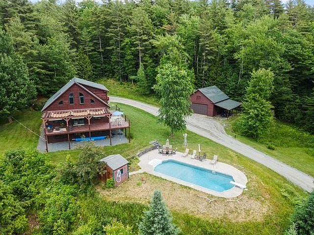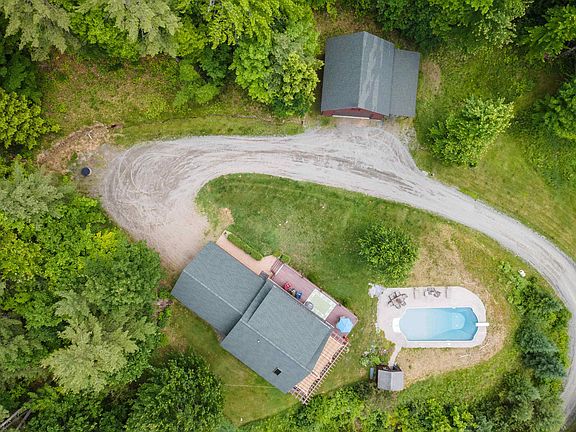 It feels like you're sitting on a tree top here with so much privacy and tranquility in the beautiful town of Monroe! This secluded gem has been lovingly maintained and updated throughout to include the roof, a new well, exterior staining, new pool liner and filter system, new deck cable railings, and new flooring. Bright, clean living space with warmth and views, the focus. Upon entering you have a first-floor bedroom and full bathroom, and a large living area open to a wrap around deck. Upper level has two more bedrooms with one being the primary bedroom and (sunken) walk-in closet. There is more than adequate storage on the interior and an amazing barn/toy storage building outside. This building offers covered storage all four seasons, for vehicles, snow sports and more! Come home to all of this and also enjoy your outdoor pool. Entertain, float around or just dip your toes in after a long day! Also a little rippling brook for the pets! A year-round residence or vacation place, THIS ONE HAS IT ALL NOT visible from the street-NO DRIVE-BYS. Subject to seller closing on another property, closing date on or after 8/15/24