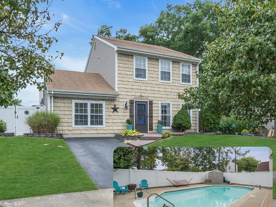Adorable Saltbox style home featuring an Expansive Back Yard Oasis with an IN GROUND POOL & Hot Tub. The large Grassy areas surrounding and all day sun make this home perfect all year round or to be enjoyed as a great vacation home. Located about 20 minutes from the beaches of LBI and a stones throw to the GSP, shopping and more! Inside you'll find 4 generous bedrooms ( with a possible 5th BR, den or office), 2.5 Updated Bathrooms and a stunning Living room/Dining combo room perfect for entertaining. A cozy fireplace anchors the room with gorgeous custom built-ins and large windows. Newer flooring throughout the home, impeccably maintained and ready for its new owners!