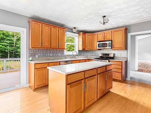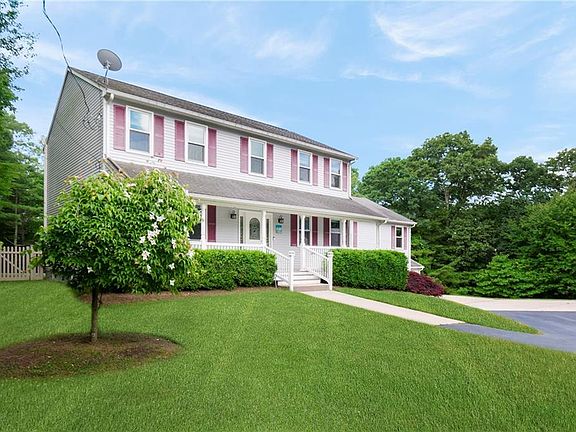 West Greenwich home nestled on 2.5 acres offers seclusion and semi-private apartment ideal for family and friends to stay or use as spacious office space. Main home has 3 bedrooms & 2 & a 1/2 bath, features master suite w/custom closet organizers, full bath w/ jetted tub, shower & double sinks: kitchen w/ stainless steel appliances &granite great room w/ cathedral ceiling, beautiful engineered hardwood floor &French doors; freshly paint throughout, many updates within past 4 years. flooring on second level, triple panel storm windows upstairs &sliding door. Heat can be supplemented w/Hearthstone fireplace & 3 patio installed pellet stoves ,family room, formal dining area & apartment. Apartment is semi-private &can be accessed from staircase off great room or private exterior door at driveway. It contains a common area, full kitchen, full bath, bedroom & laundry area. You don't need to worry about power outages either, this home has a Generac propane generator &solar panels. Propane tanks &solar panels are owned& transfer with the home. Rear yard is fenced & plenty of room for outdoor entertainment featuring a Trex deck off kitchen, fire pit,large level area w/ electric hookup, perfect for swing set or above ground pool. Second deck easy expansion &there is a shed for tools & equipment. Gardeners will be happy w/ raised beds & greenhouse. Four car detached garage w/ floored attic space completes the site. Very private home w/shared driveway off Robin Hollow Rd. Invisible fence