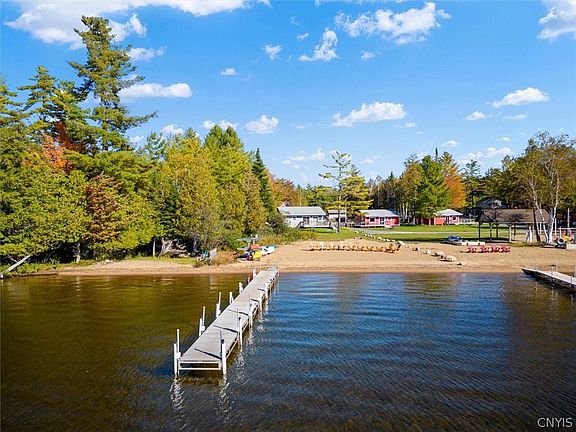 Location is key. This 4 bedroom 1.5 bath year-round home sits on almost one acre of amazing Fourth Lake waterfront in Inlet. Enjoy all lakefront living has to offer from your own dock and private sandy beach. This home is completely turnkey with spacious bedrooms, beautiful woodwork, open floor plan, wraparound porch, and standing seam roof. A first floor office with separate entrance could easily be used as a mudroom when returning from your private beach or as a place for snowmobile gear. Meanwhile the second floor laundry is conveniently located near the bedrooms. As an added bonus, a separate 3 bedroom 1 bath cottage is located just off the beach. Fully booked from spring into fall, it can be used by the new owners to generate rental income or as a guest house. The house comes partially furnished and the cottage will be left fully equipped for guests. There's also plenty of storage for toys and equipment in the attached garage and the shed. Showings to begin 10/2/22.