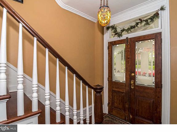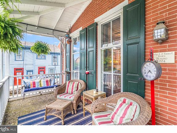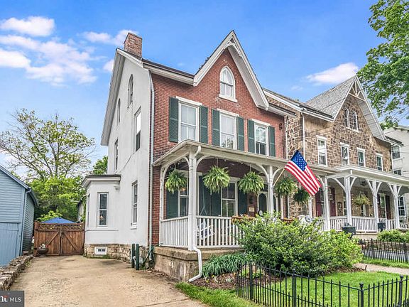 Gorgeous brick front colonial located in the heart of the borough. Many original features have been restored to maintain the historical charm and are blended perfectly with today's modern updates, making this home both beautiful and functional for today's lifestyle. Enter from a covered front porch through a double front door entry with overhead transom window and you are immediately greeted with an abundance of charm and skilled craftsmanship from top to bottom. ~Floor to ceiling windows in the family room, beautiful moldings and medallion trim, as well as, other custom millwork found throughout. Random width hardwood floors flow from room to room and are found on all three levels. The main floor has high ceilings and over-sized windows to brighten the interior. The formal dining room with bump out includes gorgeous built-in cabinetry and can handle the large gatherings, as well as, everyday living. The kitchen will impress with the custom cabinetry, stainless steel Viking gas dual fuel oven, built-in microwave, corian counters, gorgeous sideboard, center island with pendant lighting, pantry and hardwood floors. The breakfast room, located off the kitchen, features tile floors, built-in closet and access to a side patio for outdoor entertaining. A half bath with tasteful fixtures is located off the foyer and completes the main level. Two staircases will lead you to the second floor, where you will find two bedrooms, each with ceiling fans and closets. The middle bedroom has access to the second floor balcony that overlooks the side and rear yard. A gorgeous full bathroom services the second and third floors and has been finished with an elegant claw-foot soaking tub, separate stall shower with tile surround, hardwood floors, large linen closet and full laundry closet for added convenience. Up to the third floor is where you will find two more bedrooms, each with ample closet space and an large hall closet for additional storage. The basement provides a great space for extra storage and the bilco door to enter and exit provides added convenience. Outside you will find a fenced in backyard with tasteful manicured flower beds and a patio for outdoor dining. The driveway offers space for off street for two cars. The NEW Ductless A/C system has been added to each level and provides additional comfort for the warmer months ahead. Other updates during ownership include the gas hot water heater, copper gutters and rear roof.~ Well maintained and within walking distance to shops, dining, train and public transportation.