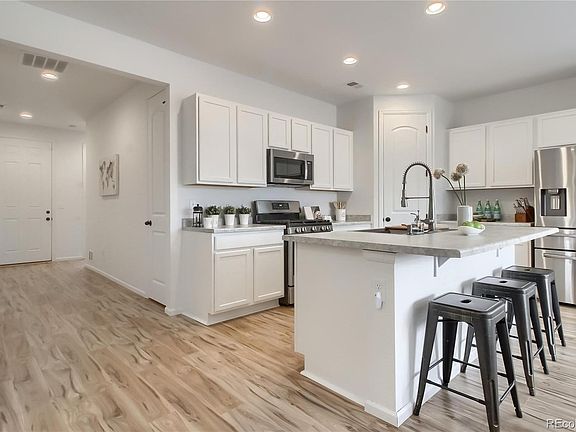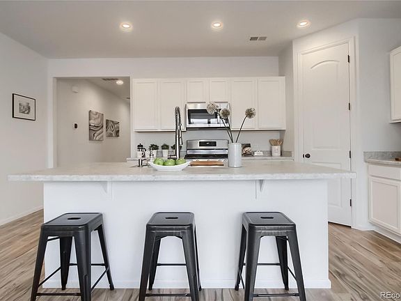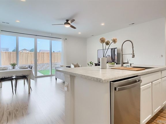 Have you been dreaming of a new construction home but do not want to wait months for it to be completed? Today is your lucky day! This Richmond American Amethyst model was built in 2020 and the owners have taken meticulous care of the home and have completed all of the large projects that come along with a new construction home. This home features 9 foot ceilings, 8 foot doors, beautiful waterproof laminate flooring and a large open Great Room that shares the living room, dining room and kitchen. There are upgraded bathroom light fixtures in both bathrooms and the vanity in the primary bathroom is plumbed for the addition of a 2nd sink. The backyard is fully fenced and has beautiful, lush green grass with a retaining wall that is waiting for your favorite plants and flowers! Smart Technology is featured throughout the house with a Ring doorbell, thermostat, alarm and sprinklers. The exterior coach lights as well as the string lights in the back are fully programable and are made by Feit Electric. Founders Village has lots of community trails for walking and bike riding. A new elementary school is a couple blocks away and there is a super cute TOT Lot playground near the home. The base price of this model is currently $505,950.00. Lot premiums start at approx $10,000.00. Not including the 17 Seer Central Air system there are over 15k in upgrades and Design Center options. To build this home today without any design center selections, fencing or rear landscaping the price would be just under $538k. The 10 yr Builder Warranty remains with the home. This home is available for quick occupancy.