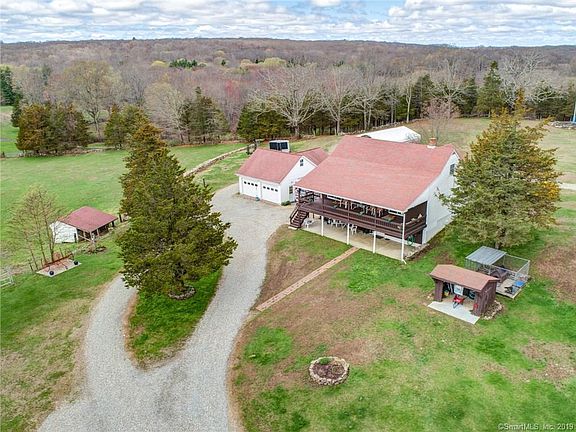 Give me that country life. 50 acre farm with property in both Bozrah and Lebanon. Very easy access off Rt 2. Sits back off road allowing for a very private setting. Sitting on covered porch you look overlook the farm with sweeping views of rolling pasture land. There are several barns. Stables, workshops, garages and equipment storage buildings. The land has good solid fencing, a turf riding ring, small pond and tons of potential for whatever you plans may be. Currently the main barn 30x44 has 4 stalls but could be re-designed to offer many more. Plenty of room for an indoor arena if one was desired. The home is modest and offers a first floor bedroom, kitchen and bath. The second floor has 2 bedrooms living room, kitchen and full bath as well as a wonderful covered porch and the 3rd floor has an additional 2 bedrooms with room for another bath. Driveway and GPS is Lebanon CT . House and barns sit in Bozrah. additional assessment for Lebanon land is 44,720. This includes a 2 acre parcel as you drive in/ Tax's $1314 on Lebanon land TOTAL TAX'S $6997.76