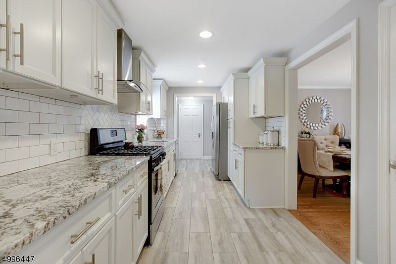 Location, loc., loc.! MODERN & UPDATED w/OPEN FLOOR PLAN! Sun-drenched home w/gleaming HARDWD flrs! 1st flr features lrg fam. room, w/WD BURNING fireplace, tons of windows, opens to a den/office, REN. KITCHEN, WHITE CABINETS w/soft close, GRANITE countertops, white subway tile backsplash, NEW ss appliances, NEW kitchen fl, mudroom area, REN. PR, ATTACHED GARAGE, walkout to a spacious flat patio/backyard for all your entertaining needs! 2nd lvl features three more spacious bdrms, tons of closet space, & a full modern bathroom w/shower/tub. Finished bsmnt w/new tile flooring features a rec. room/office or gym area, laundry room & storage room. 2 min. to JITNEY to SHORT HILLS train (36 min express train to NYC), Port Authority bus a 1/2 mile away, steps to TOWN POOL & TOWN PARK, NEW A/C & NEW HWH. Welcome Home!